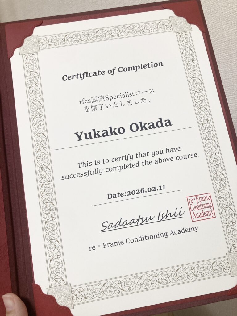 少し前のことになりますが、rfca認定スペシャリストに合格いたしました! 2018年にrfcaというメソッドを知りました。 rfcaのHPはこちらです。 TOP of rfca コンセプトは… -